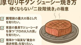牛タンを自宅で専門店級に焼く黄金法則を40代パパに伝授!フライパンで硬くパサつかせない仕込み術と強火焼きの秘密。失敗しないコスパ最強通販選びの極意も解説。