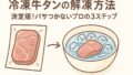 まず、絶対厳守の「緩慢解凍」ルール。通販や冷凍で購入した牛タンは、急な温度変化に非常に弱いです。急いで解凍しようとすると、肉の細胞が壊れてしまい、旨味成分が流れ出てパサついた牛タンになってしまいます。