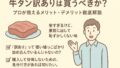 コスパを重視する40代パパにとって、「訳あり」は狙い目です。ただし、「なぜ訳ありなのか」を確認することが肝心です。多くの場合、「形が不揃い」「切れ端が多い」「厚みが均一でない」といった見た目に関する理由であり、味や安全性に問題はありません。むしろ、安価にタン元の柔らかい部位が含まれていることもあります。おつまみや丼の具材として使う分には、見た目は全く気になりません。ただし、極端に価格が安い商品は、硬いタン先の割合が多い可能性も否定できないため、購入前に「柔らかさ」に関する具体的なユーザーレビューをチェックするひと手間を惜しまないようにしましょう。